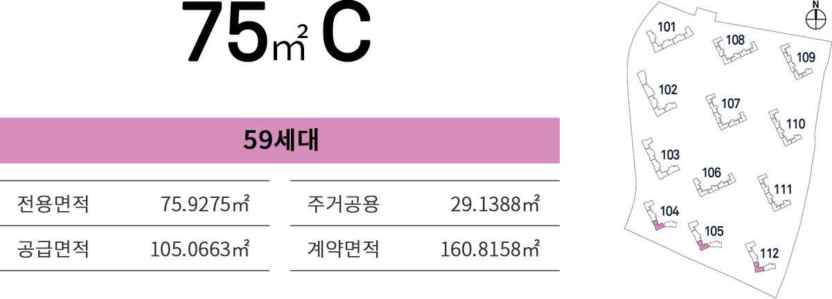 ※ 본 홍보물에 표기된 세대별 면적은 전용면적 기준으로 소수점 넷째 자리까지 표현되며, 면적 계산상 소수점 다섯째 자리에서 정리하는 방식으로 인해 연면적과 전체 계약면적과는 소수점 이하에서 약간의 오차가 생길 수 있으며, 면적은 사업계획승인 변경 등으로 실 시공 시 변경될 수 있습니다.